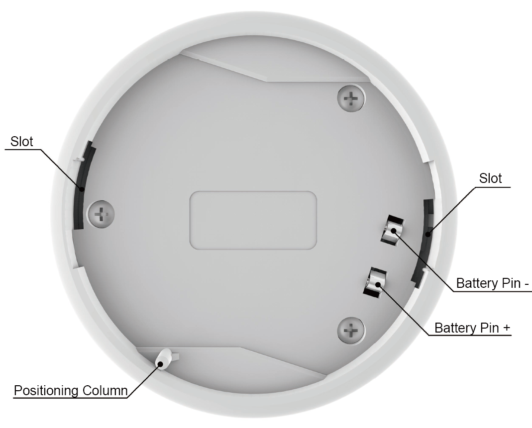 Nota: Se você não puder girar o alarme após o inseto no gancho no slot, verifique se a coluna de posicionamento se alinha com a ranhura de posicionamento.